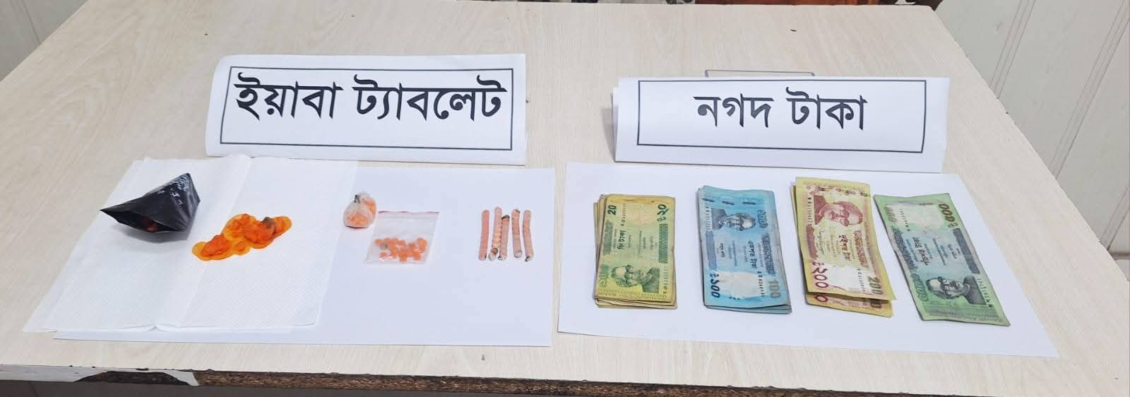 উদ্ধারকৃত মাদক ও নগদ টাকা।